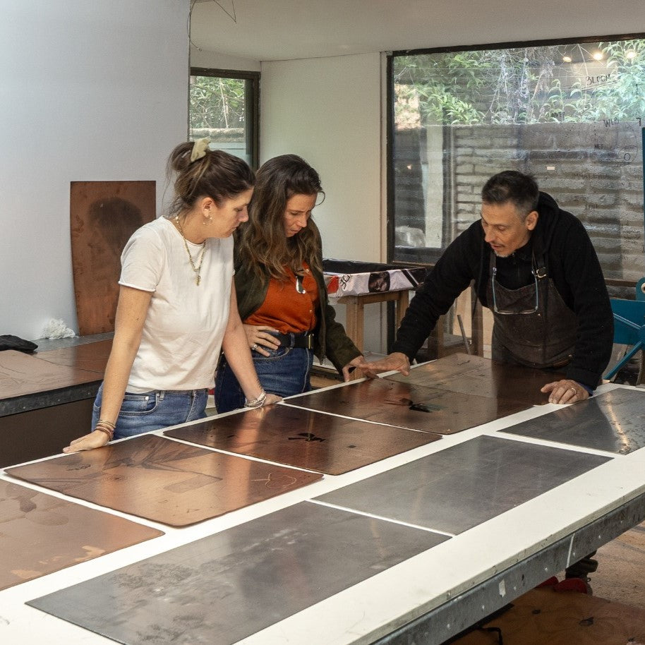 El taller está equipado para trabajar sobre grabados en metal con técnicas